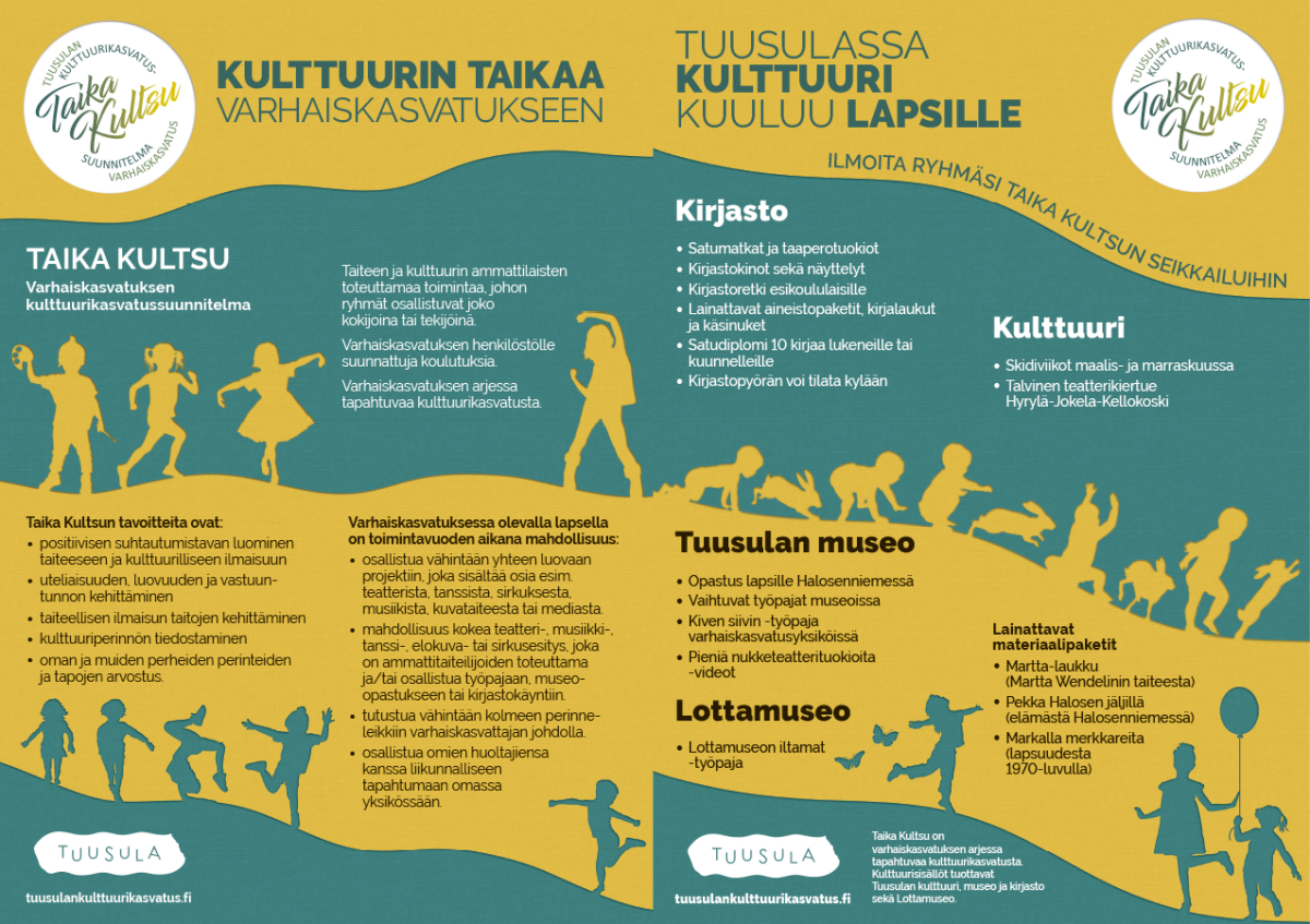 - TaikaKultsu on luotu yhdessä varhaiskasvatuksen ja kulttuuripalveluiden kesken